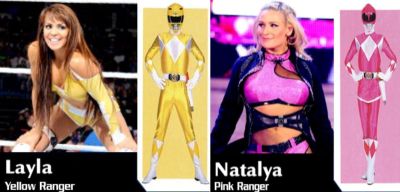 Layla and Natalya are dressed like the Yellow and Pink Rangers.