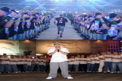 John Cena and Eminem have a lot in common. Besides rapping, acting and and you know….being controversial, both Cena and Eminem love to make an entrance. In 2000, Eminem performed his hit single, “The Real Slim Shady” at the VMAs, marching into Radio City Music Hall with hundreds of Eminem clones. In 2009, John Cena decided to emulate this entrance before match with The Big Show and Edge for the World Heavyweight Championship at Wrestlemania 25.