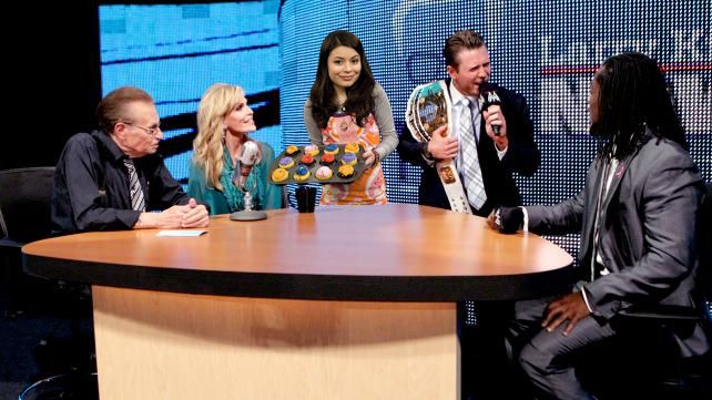 Daniel Bryan calls himself incredibly attractive then hits on Larry King’s wife, Shawn, who says she doesn’t make a habit out of dating guys who look like they sleep under bridges with trolls. Bryan defends the one time he slept under a bridge until Larry King tells Daniel Bryan to accept the Goatface moniker, then introduces the next caller from Part’s Unknown, Kane!