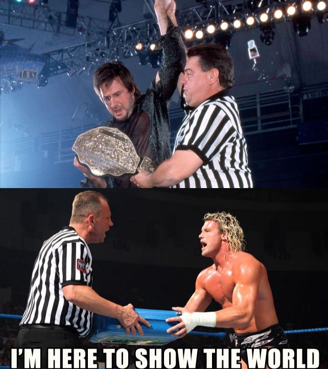 As for the Dolph Ziggler Meme, we wanted to put find it hilarious, but we wanted to put our own spin on the meme by having Dolph Ziggler cash in on fictional champions (and David Arquette.)