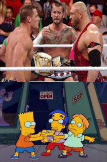 John Cena, Ryback and CM Punk are like Bart, Milhouse and Martin fighting over Issue #1 of Radioactive Man.