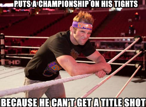 Zack Ryder hasn’t had a belt in so long that he had to paint one on his tights.