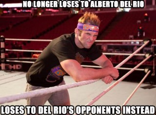 Waiting for Alberto Del Rio’s theme to get one of those face turn “upgrades.” It’ll either be done by Downstait or be a really bad rap.