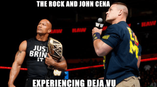 Was hoping for The Rock to show up as Rocky Maivia. Big Teeth. Goofy Smile. Doing that fists shaking hulk up thing that all faces do.