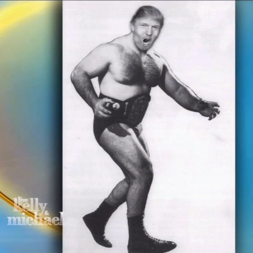 Celebrity Apprentice being back on the air can only be good for the WWE. Let me explain: Even though Wrestlers are 0 for 2 (Thanks, Goldberg; Sorry, Maria!) at winning the reality competition, its host – Donald Trump – is able to do favorite thing: talk about himself, which includes his WWE Hall of Fame Induction. This season’s Apprentice overlaps with Wrestlemania Season so both are brought up on the talk show circuit. This inspired the wrestling loving Live with Kelly and Michael to do some research on Donald Trump: the wrestler:
