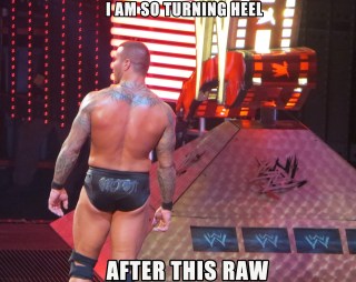 Randy’s hearing voices now, too. They’re just all chanting for other wrestlers. #WWE #Raw
