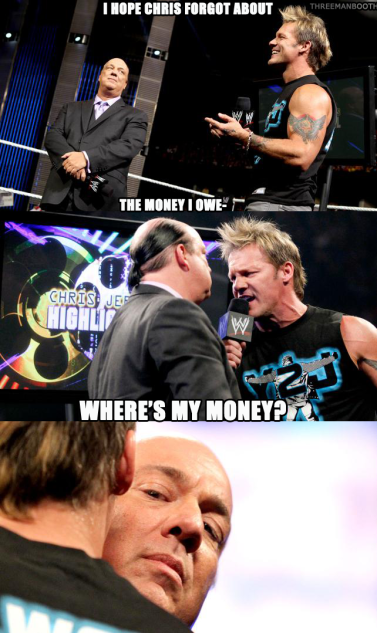 Paul Heyman gets fed up and accepts the challenge on Punk’s behalf Jericho Thanks Heyman then shakes his hand and brings Heyman in closer. Jericho tells Heyman that after Payback, Punk will Never. EVER. Be The Same. Again!