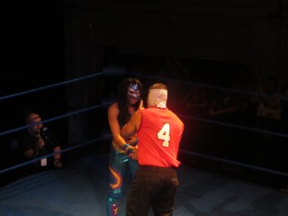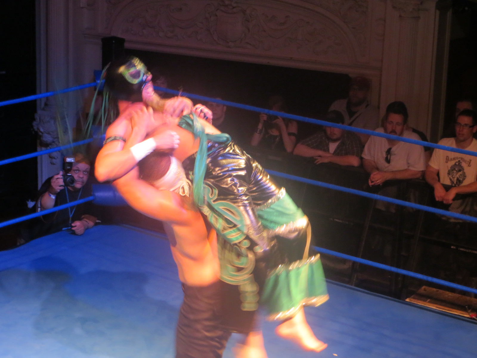 Thousands of CHIKARA Army members entered the Trocadero in Philadelphia for CHIKARA’s Annivesary Show. Fans not in the area? well, they watched at home on iPPV. From the moment we got inside, CHIKARA did not disappoint. Scarlett Bordeaux kept us entertained during the pre-show shenanigans until we had our first match: Mr. Touchdown w/ Dasher Hatfield vs. Saturyne in a rematch from the Young Lions Cup.