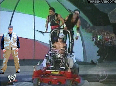 Mr. McMahon wants no match. Triple H wants an Iron Man Match. They’re literally fighting for their RAW Script Ideas on air.
