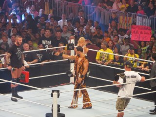 Randy Orton gets upset that Fandango interrupted him, but Fandango cuts Orton off again to tell him that he won’t be cashing in his Money In The Bank on John Cena, he will be cashing in against Fandango. Fandango tells Cena that there is only one man that the entire WWE Universe wants to see face him and his name is…