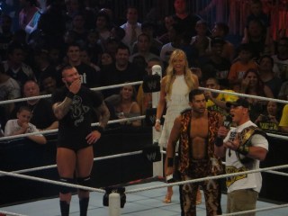 John Cena continues to rant until Randy Orton comes out and interrupts him. Randy Orton tells Brad Maddox to be careful and to not get too far ahead of himself because there’s a very good chance that come Summerslam, that John Cena will not be Champion. Orton tells Cena that he’s not cashing in tonight because he doesn’t want to make the same stupid mistake Cena did last year. Orton believes you should take advantage of opportunities given to you and being straight up. Orton tells Cena that when he cashes in his Money In The Bank Contract, Cena will never see it coming.