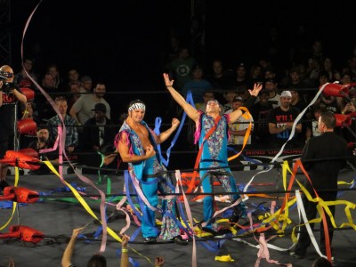 The crowd wasn’t the only group having fun with the streamers. Wrestlers like The Young Bucks appreciated the show of respect and basked in the papier mache shower. Other wrestlers like Silas Young attacked the streamers; this only resulted in more streamers being thrown directly at him (rather than in his general direction). Everyone was rowdy in anticipation of the action to follow.