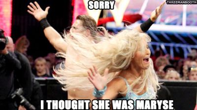 This was AJ Lee’s version of Shawn Michaels vs. The 9 Guys from Syracuse.