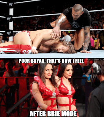 Randy looks like he is going to creepy kiss Bryan like he did Steph when she was knocked out #RAW