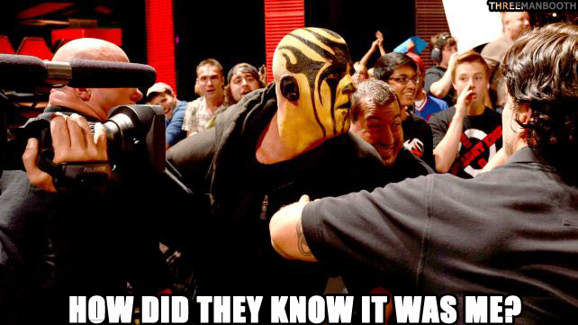 Legit LOL at Goldust wearing a hoodie and also FULL MAKEUP to go incognito. #Raw