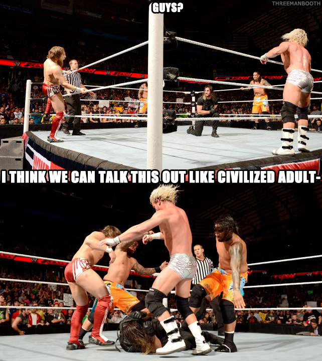 Daniel Bryan and the Island of Misfit Toys vs. The Shield. Let’s rock. #RAW