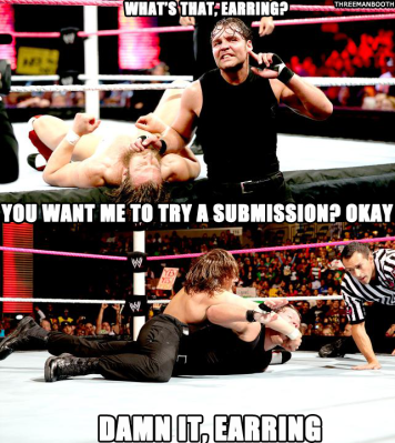 Oh, Dean Ambrose. NEVER do a Roll-up on Daniel Bryan. Or a Submission. Basically, Don’t Wrestle Him. Just Give Up. #RAW