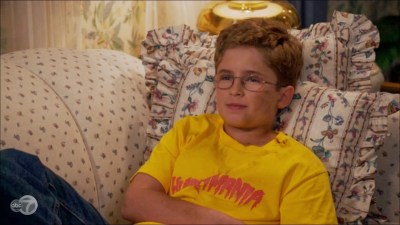 The Goldbergs is based on videos show creator Adam F. Goldberg took of his family during the 1980’s. Each episode takes place in the year 1980-something, allowing it to jump around the decade adopting pop culture references. The episode “Why’re You Hitting Yourself?” has a a nod to the rise of the Rock n’ Wrestling Era; Adam, played by Sean Giambrone, wears a Hulkamania t-shirt. The kicker is the rest of the episode has nothing to do with wrestling! It’s about scrambled cable channels and match-making. Or something; we stopped paying attention once the red and yellow appeared.