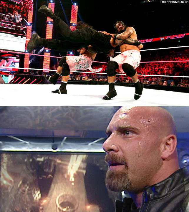 Roman Reigns hits The Usos with a DOUBLE SPEAR!