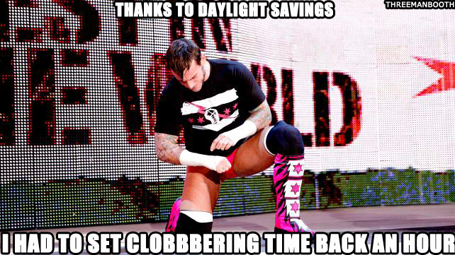 Luke Harper goes for his spinning clothesline but CM Punk counters and rolls him up.
