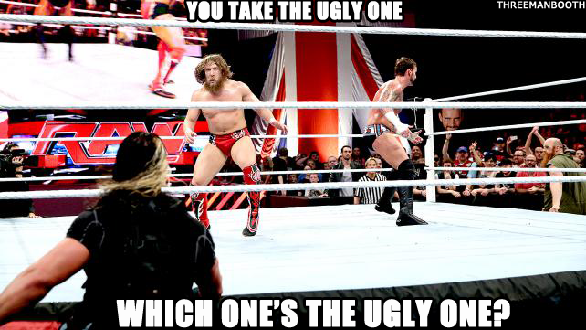 Daniel Bryan locks Seth Rollins in a surfboard. CM Punk comes in and kicks Seth Rollins in the chest.