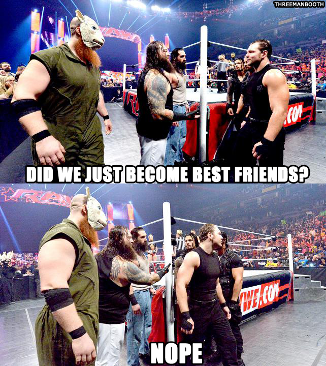 The Shield, The Wyatt Family and The Real Americans beatdown CM Punk, Daniel Bryan, The Rhodes Dynasty and The Usos until…the single, worst thing that could happen in the WWE, happens…
