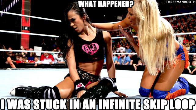 Rather than get on the apron, AJ Lee decides to skip around the ring.