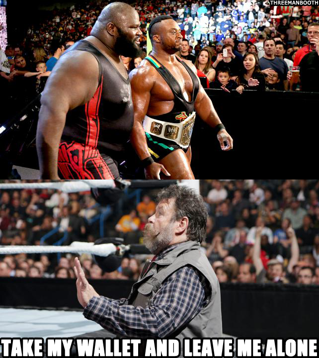 Brodus Clay almost hits Tensai with a Bonzai drop, but R-Truth and Xavier Woods stop him. R-Truth and Xavier Woods hit Brodus Clay with a Double Dropkick.