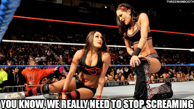Brie Bella screams Brie Mode then goes for a flying dropkick, but misses