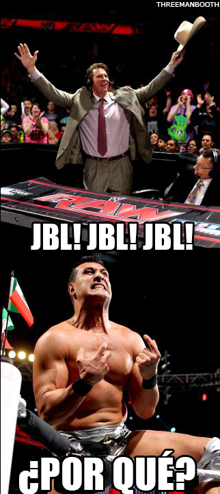 The WWE Universe starts chanting for “JBL.” JBL embraces the chants. Alberto Del Rio gets pissed off.