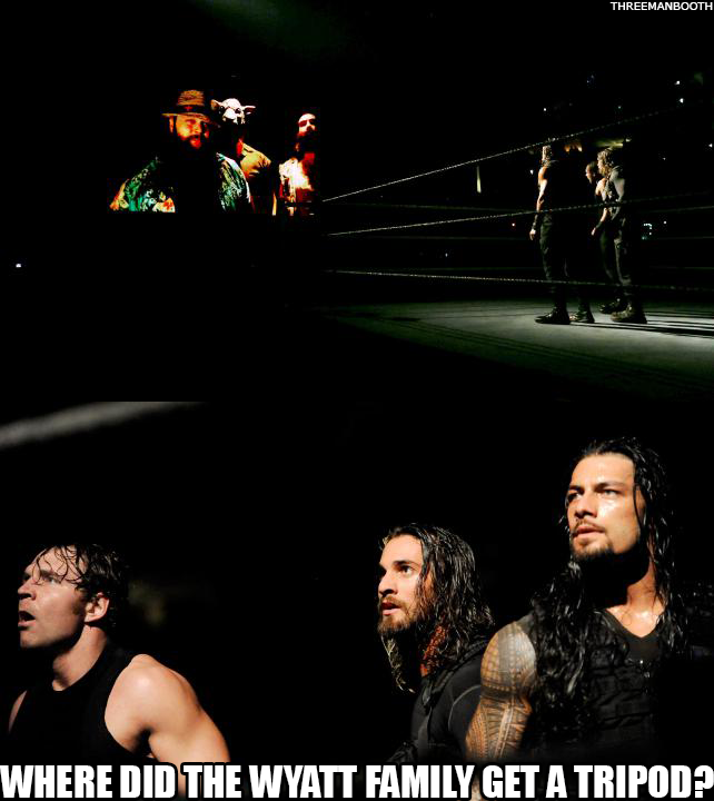 Bray Wyatt appears on the titantron and calls The Shield pawns, who spend all of their useless days clawing towards a beautiful moment where they sacrifice themselves in the name of their king, Wyatt tells them that their moment is coming as Wyatt will build his empire next to the sea, and he will sit on his throne as he watches his enemies drown.