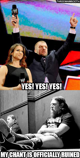 Randy Orton complains as Triple H starts to do a “YES!” chant with the WWE Universe.