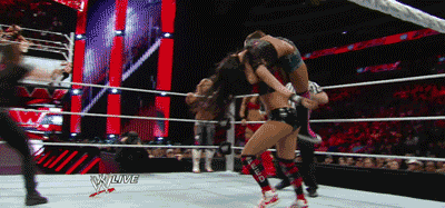 At RAW, the Total Divas are backstage watching The Bella Twins take on AJ Lee and Tamina Snuka. Eva Marie and Summer Rae are cheering Brie Bella on.
