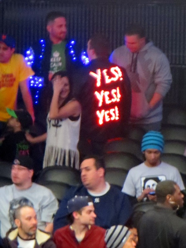 The So That Happened RAW Recap covered a lot of what we saw at the Barclays Center this past Monday but there were some moments that had to be seen in person. Wrestling cosplay has been on the rise as of late. Last RAW, there was one guy dressed as Bray Wyatt: Hawaiian shirt + straw hat + beard. This RAW, there were tons of costumes : Hogans, Flairs, Warriors, Wyatts and even a Daniel Bryan light-up YES! YES! YES! jacket (who is best friends with a Chris Jericho light-up jacket):