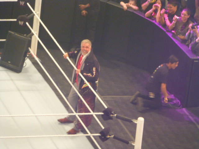 The Ultimate Warrior puts on a Warrior Coat then shakes the ropes.