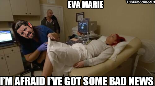 At the doctor, Eva Marie might have an ovarian cyst. After a scan, The Doctor reveals that Eva Marie had a cyst that ruptured and she will have to be bedridden temporarily in order to heal. Eva Marie calls WWE immediately.