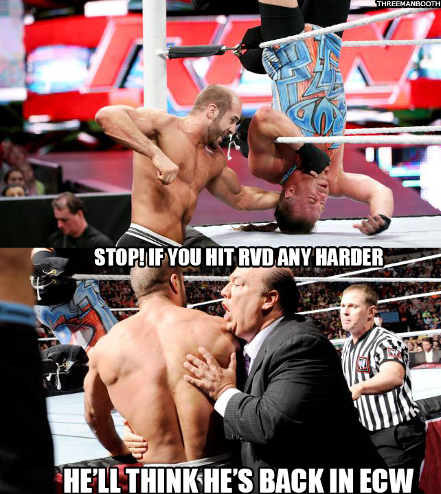 Rob Van Dam dives on Cesaro.