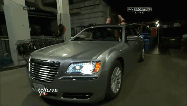 Daniel Bryan tries to drive off, but Kane is on top of the car. Bryan drives away and Kane falls off the car.