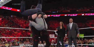 After Brad Maddox reluctantly comes out, Triple H reminds Brad Maddox of the stipulations between Seth Rollins and Batista last week, where everyone was banned from the arena. Triple H asks Brad Maddox why he made Dean Ambrose and Roman Reigns commentators, but Brad Maddox says he had no choice because The Shield confronted him.