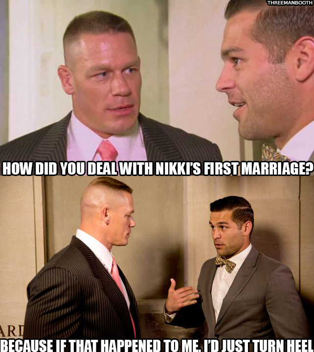 John Cena is shocked and surprised to hear this, but thanks JJ for talking about it.When Nikki Bella comes back, John Cena kisses her then walks out..