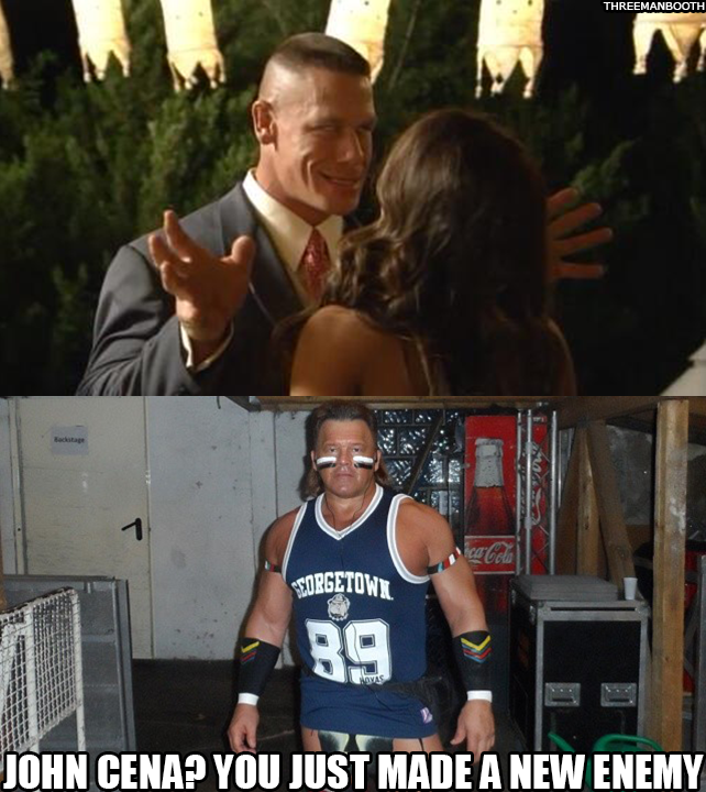 After the toast, Nikki Bella apologizes to John Cena, but Cena tells her that he doesn’t care what she did before they met each other, but what he cares about is that she tells other people. But he would like to be on top of that “Totem Pole.” Cena then follows it up with a Totem Pole Face.