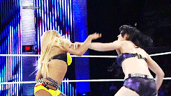 Still, Cameron and Paige had a match on WWE Superstars. Again, Cameron goes into the Reality TV bag of tricks: she gives Paige that classic open handed slap. What she wasn’t expecting, though, was Paige’s Wrestling slap as an immediate response.