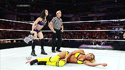 This is where keeping it reality started to go wrong for Cameron. The Total Divas star found herself at the Mercy of the youngest Divas champion in the WWE. She tried reaching into her bag of Reality TV tricks again, pulling out faux-sincerity to get the upper hand for a moment. Paige prevailed, locking in her Scorpion Crosslock submission.