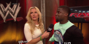 Backstage: Renee Young asks Kevin Hart about Think Like A Man Too. Kevin Hart starts to plug Think Like A Man Too, but gets interrupted by Adam Rose and The Exotic Express.
