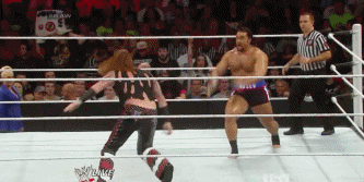 Backstage: Roman Reigns checks on Vickie Guerrero. Reigns tells Vickie that Stephanie McMahon might fire her next week, but before that happens, she should do something positive for the WWE Universe. Reigns tells Vickie Guerrero to put him in the battle Royal. Vickie Guerrero screams at Reigns, telling him he’s in the match.