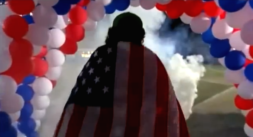 On Eastbound and Down, when Kenny Powers made his return to the baseball (in Mexico), he decided he needed a grand introduction. So he had his gopher / friend Stevie procure a donkey, some fireworks, an American flag and, of course, “Real American”