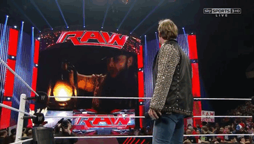 After another loud “Y2J” Chant, Chris Jericho continues the list of things he’s seen, including: The Undertaker almost getting burned alive by his own pyro, wrestled John Cena in his first PPV, been knocked out by Mike Tyson, Mikey Rourke and Bob Barker. Jericho looks in the camera and reminds Barker that he will still take him on anytime, anyplace,
