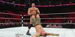 Cesaro goes for a dive, but John Cena catches him and gets ready for an AA.