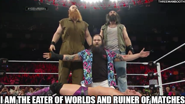 The Wyatt Family beats down Chris Jericho. Bray Wyatt hits Chris Jericho with Sister Abigail.
