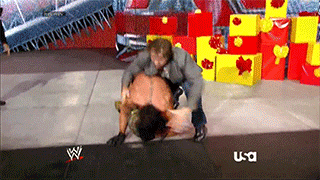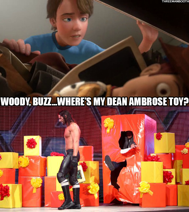 Seth Rollins checks the giant present to see if it’s Dean Ambrose.